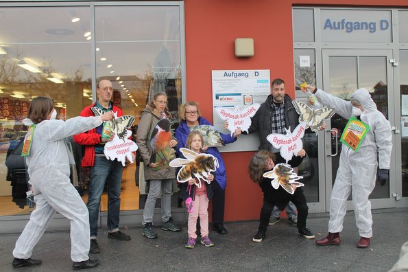In Brüssel wurde über Glyphosat abgestimmt. Vom 21. - 23. November protestierten daher überall in Deutschland Campact-Aktive an CDU/CSU-Geschäftsstellen. Auch in Reinickendorf fand am 23. November eine Campact-Aktion gegen Glyphosat statt. Die Reinickendorfer Grünen waren mit dabei!