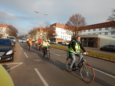 Fahrrad-Demonstration – wir fahren zu verschiedenen Einrichtungen im Bezirk, in denen Frauen einen tollen Job machen und wenig Anerkennung dafür bekommen; wir beachten die Abstandsregeln und die Maskenpflicht während der Fahrrad-Demo.