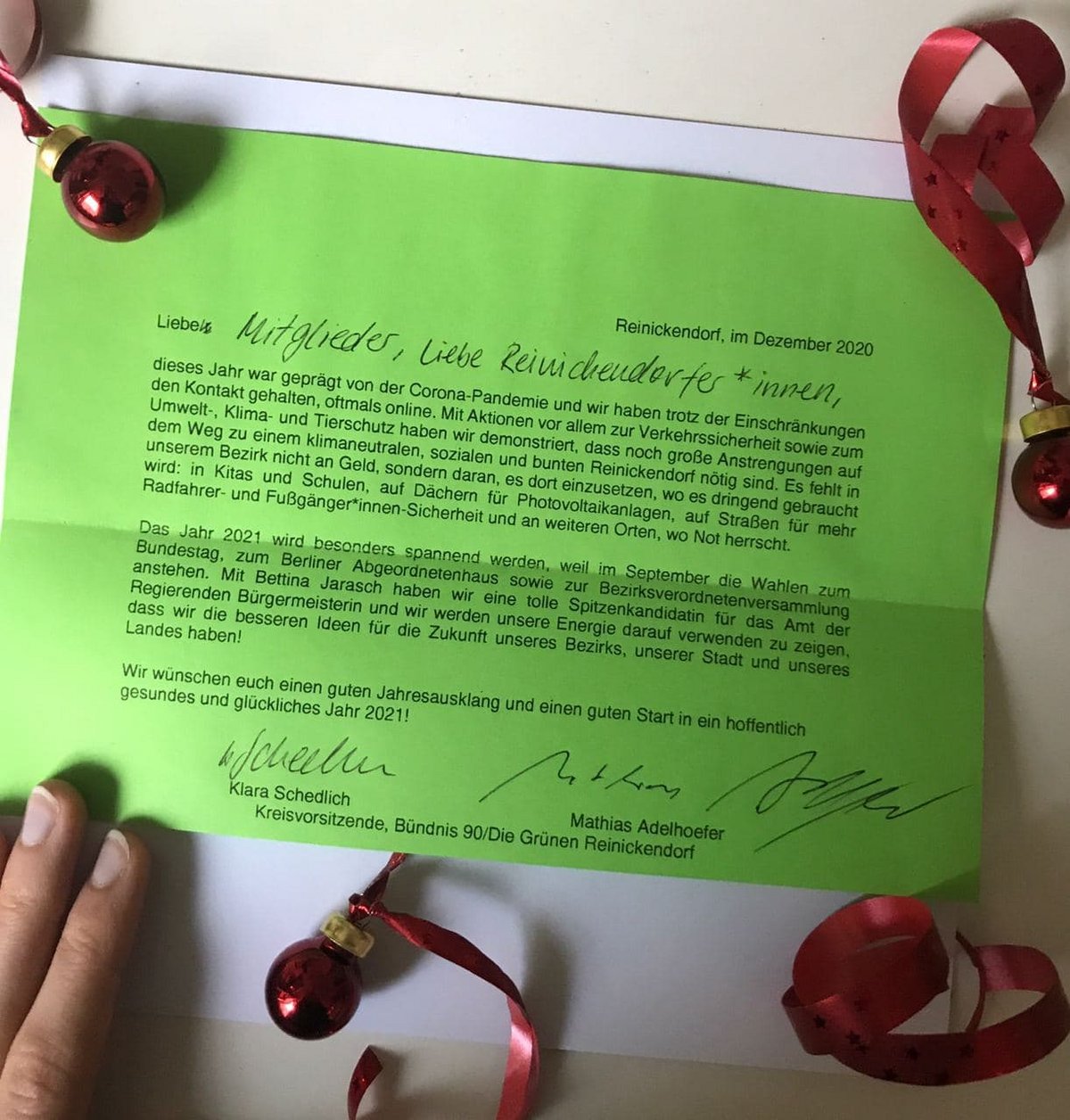 Wir unterstützen den Beschluss, den unsere Grüne Bundesdelegiertenkonferenz am 25. November mit überwältigender Mehrheit und selbstverständlich auch mit den Stimmen der Reinickendorfer Delegierten gefasst hat. Wir fordern Sie hiermit eindringlich auf, die geplanten Rodungen auszusetzen, zumindest bis über den Kohleausstieg auf Bundesebene in einer neuen Bundesregierung entschieden ist.