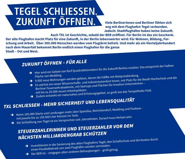 Wir wollen noch einmal richtig Danke sagen und Respekt zollen gegenüber dem Flughafen der kurzen Wege. Die beispiellose Pannenserie beim Bau des neuen Flughafens Berlin Brandenburg (BER) hat für eine jahrelange Verzögerung der Schließung von TXL gesorgt, was für 300.000 Anwohner*innen weiteren Fluglärm und Abgase zur Folge hatte.