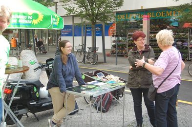 Beim Info-Stand auf der Frohnauer Brücke bestimmten am 29. Juli wieder der Dieselskandal und der Kartellverdacht der deutschen Autokonzerne die Fragen und Kommentare der Bürger*innen.