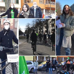 Bei sonnigem Wetter veranstaltete der Kreisverband Bündnis 90/Die Grünen Reinickendorf am 08.03.2021 eine Fahrraddemonstration zum Internationalen Frauentag. Vor dem Rathaus Reinickendorf trafen sich ca. 30 Personen mit ihren Fahrrädern, die unserer Einladung gefolgt waren und ihre Solidarität zum Ausdruck bringen wollten.